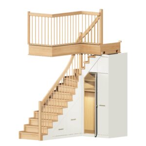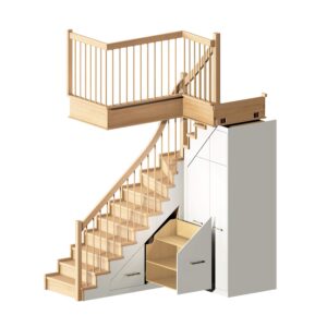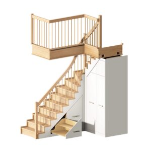 - lieferbar in 8-12 Wochen, incl. Mwst. und Montage zzgl. Lieferung Diese Lösung maximiert den Stauraum unter einer viertelgewendelten Stahltreppe. Drei Vollauszüge, darunter einer mit 160 kg Tragkraft für Schuhe, und ein Korpus mit Einlegeböden nutzen den Platz effizient. Maße bis 2800/2000 mm Länge, 2600 mm Höhe und 850 mm Tiefe sind flexibel anpassbar. Fronten in verschiedenen Dekoren sorgen für ein…